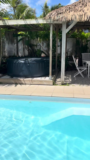 En plus de votre espace extérieur, la villa dispose d'un espace partagé ou se trouve une piscine, un carbet, un barbecue, et des bains de soleil. Vous y trouverez un salle de jeux ou se trouve un billard, des toilettes et une cuisine extérieur.